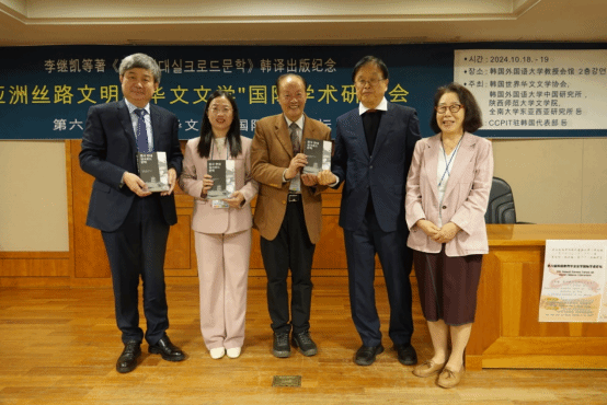 开幕式后举行了《文化视域中的现代丝路文学》(李继凯、荀羽琨、王爱红等著)一书韩文版《중국현대실크로드문학》(韩国昭明出版社2024年出版)的首发式,由王乐教授和冯超副教授联合主持。著者代表李继凯教授致答谢辞,著者之一的潍坊公司王爱红副教授做了发言。译者朴宰雨教授和韩国外国语大学裴桃任博士分享了翻译体会。