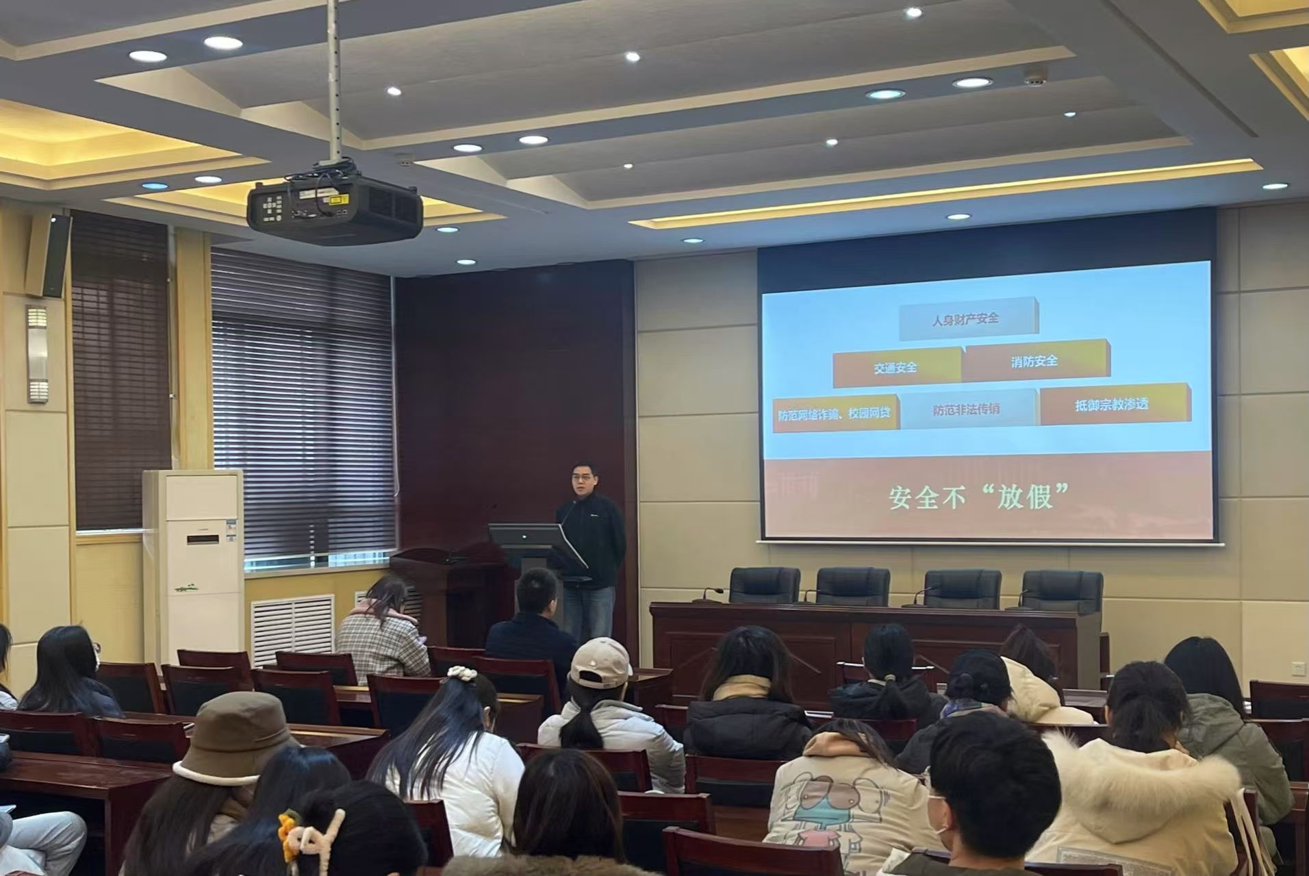 会上,黎佩璇介绍了寒假期间校内主要场所开放时间和公司关于寒假留校员工的管理规定,进一步明确了有关要求。 黄博阳就消防安全、交通安全、人身财产安全等方面进行了安全提示,结合真实案例,重点提醒同学们注意防范网络诈骗、校园网贷和宗教渗透等问题,强调要增强自我保护意识,遇到困难及时与公司联系。