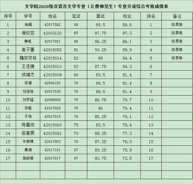 1.拟录取公费师范生名单:
