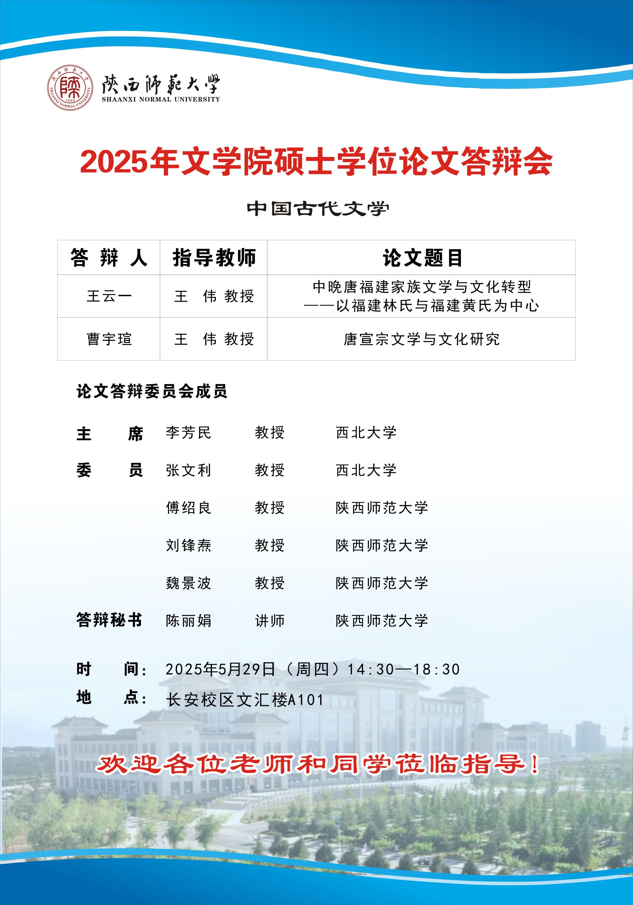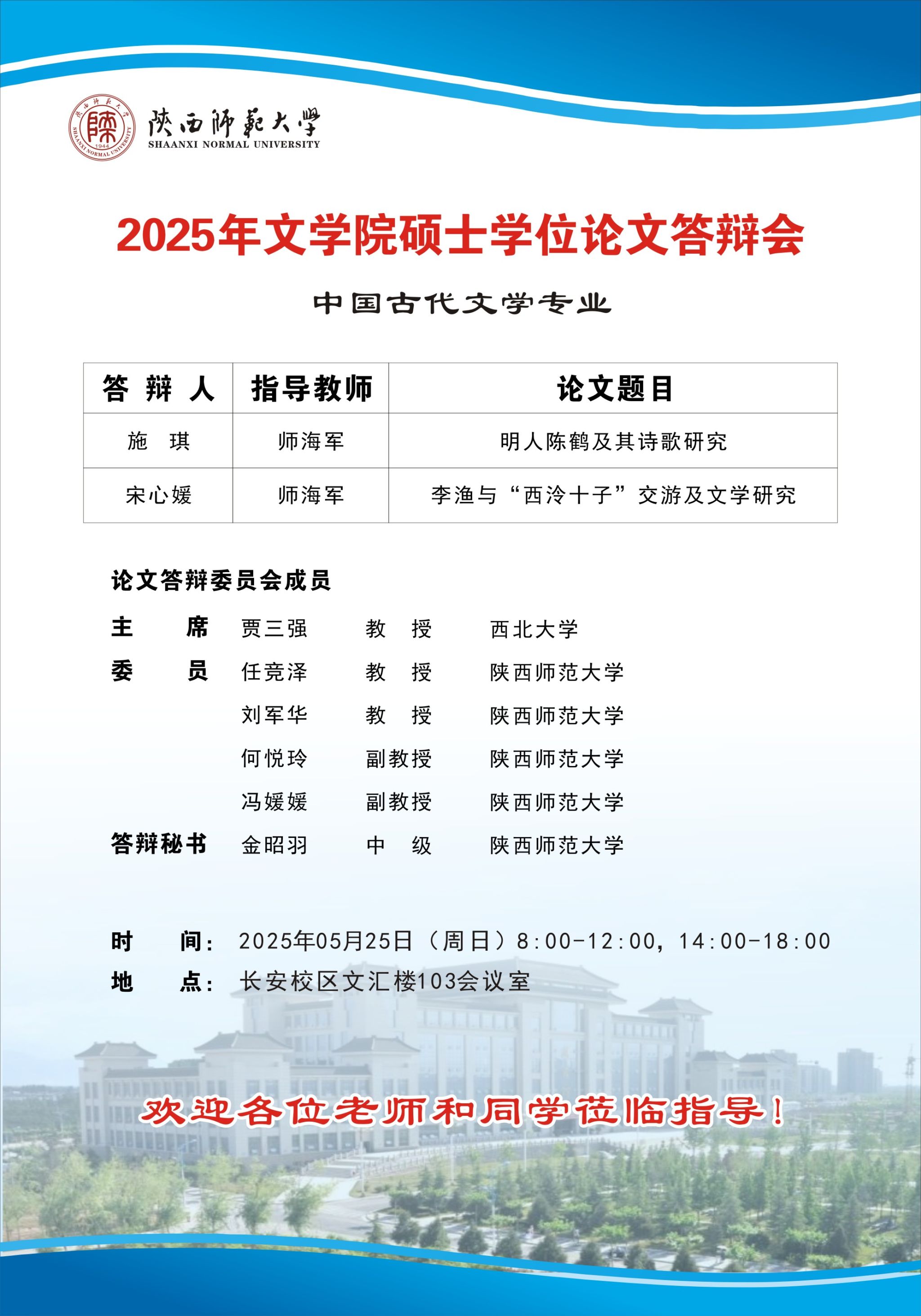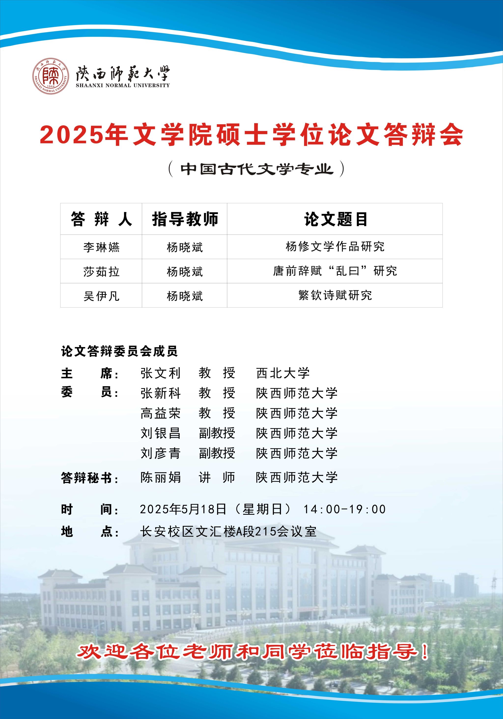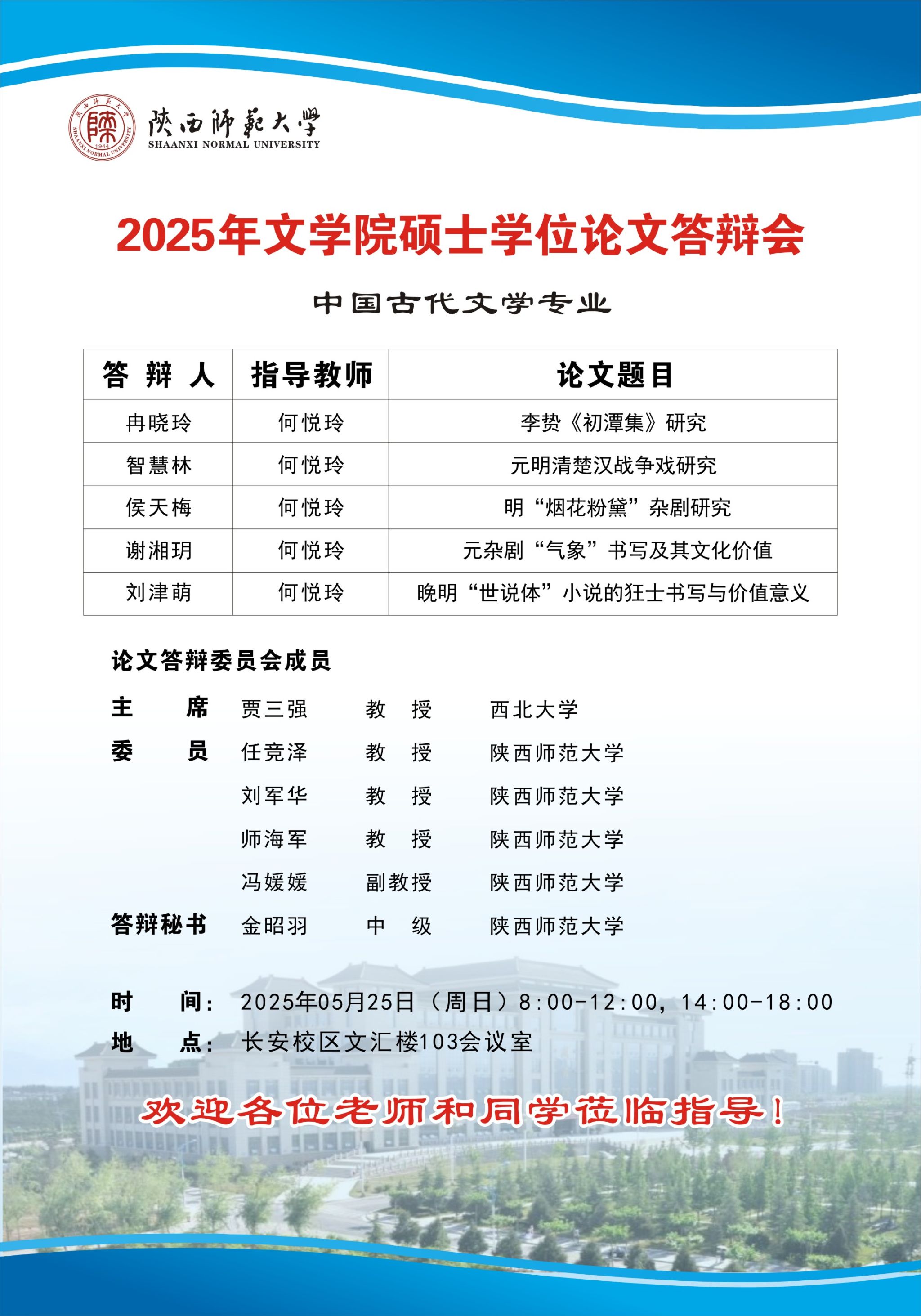 2025年上半年bw西汉姆联硕士学位论文公开答辩会(中国古代文学专业)
