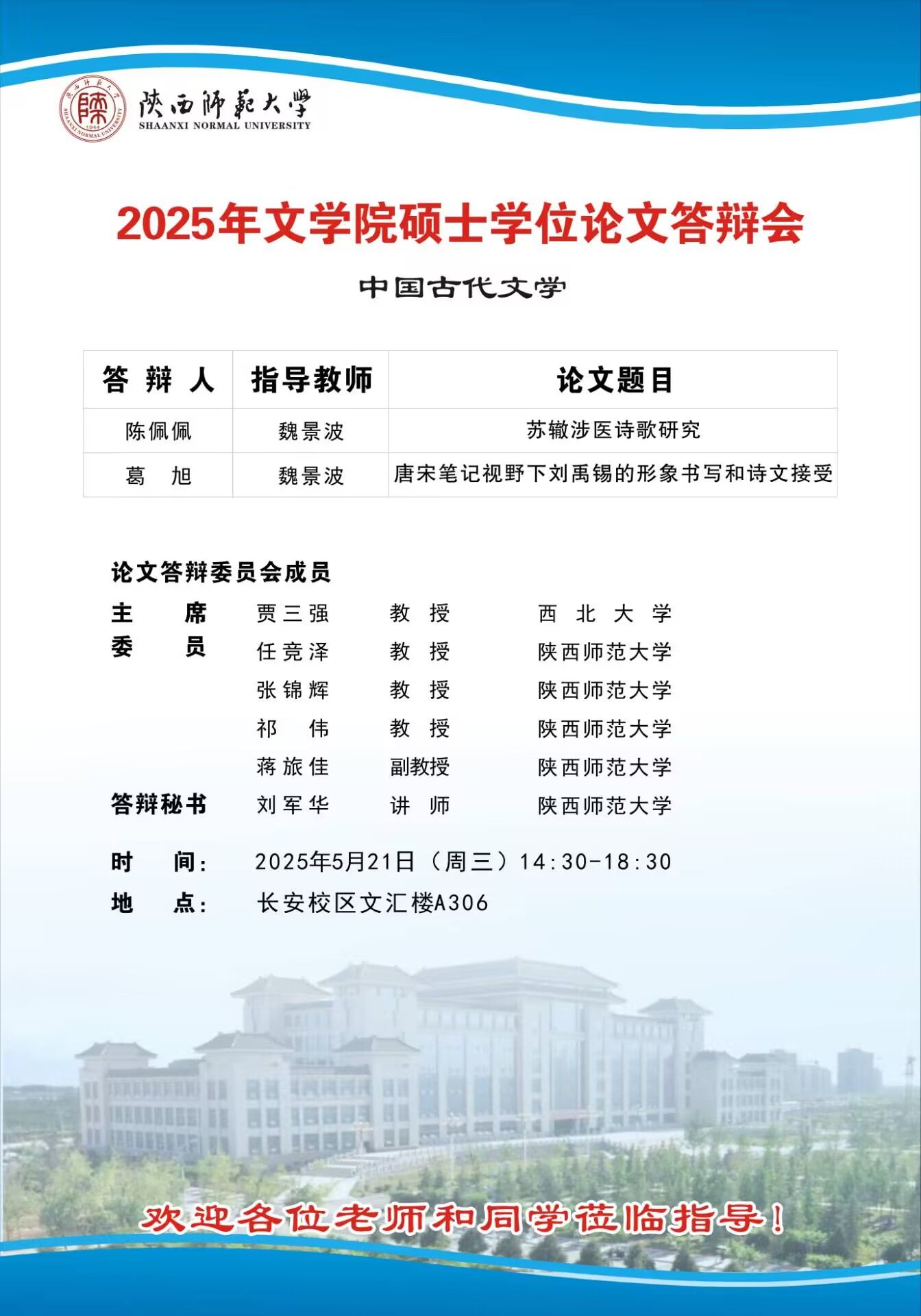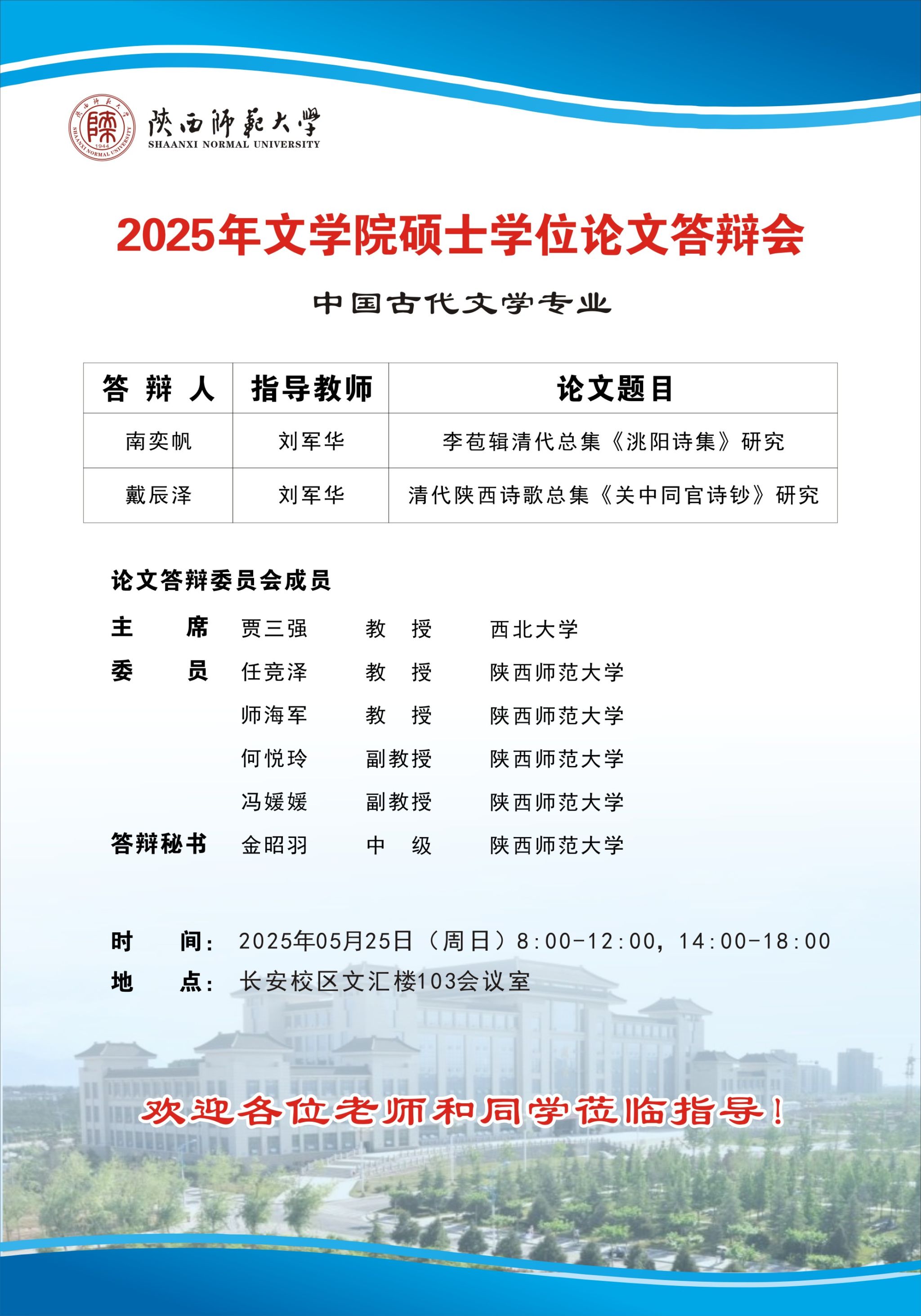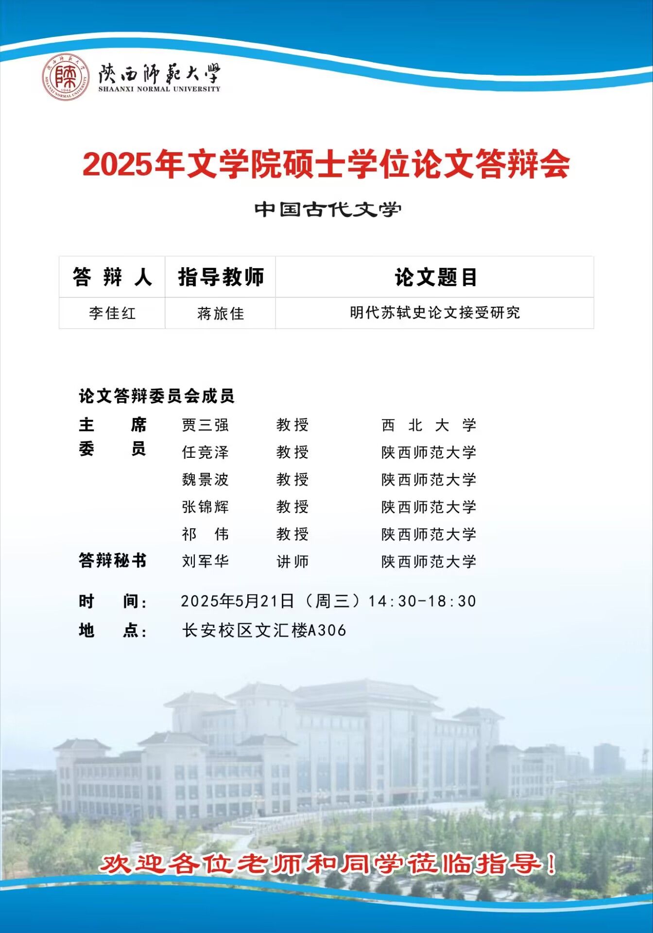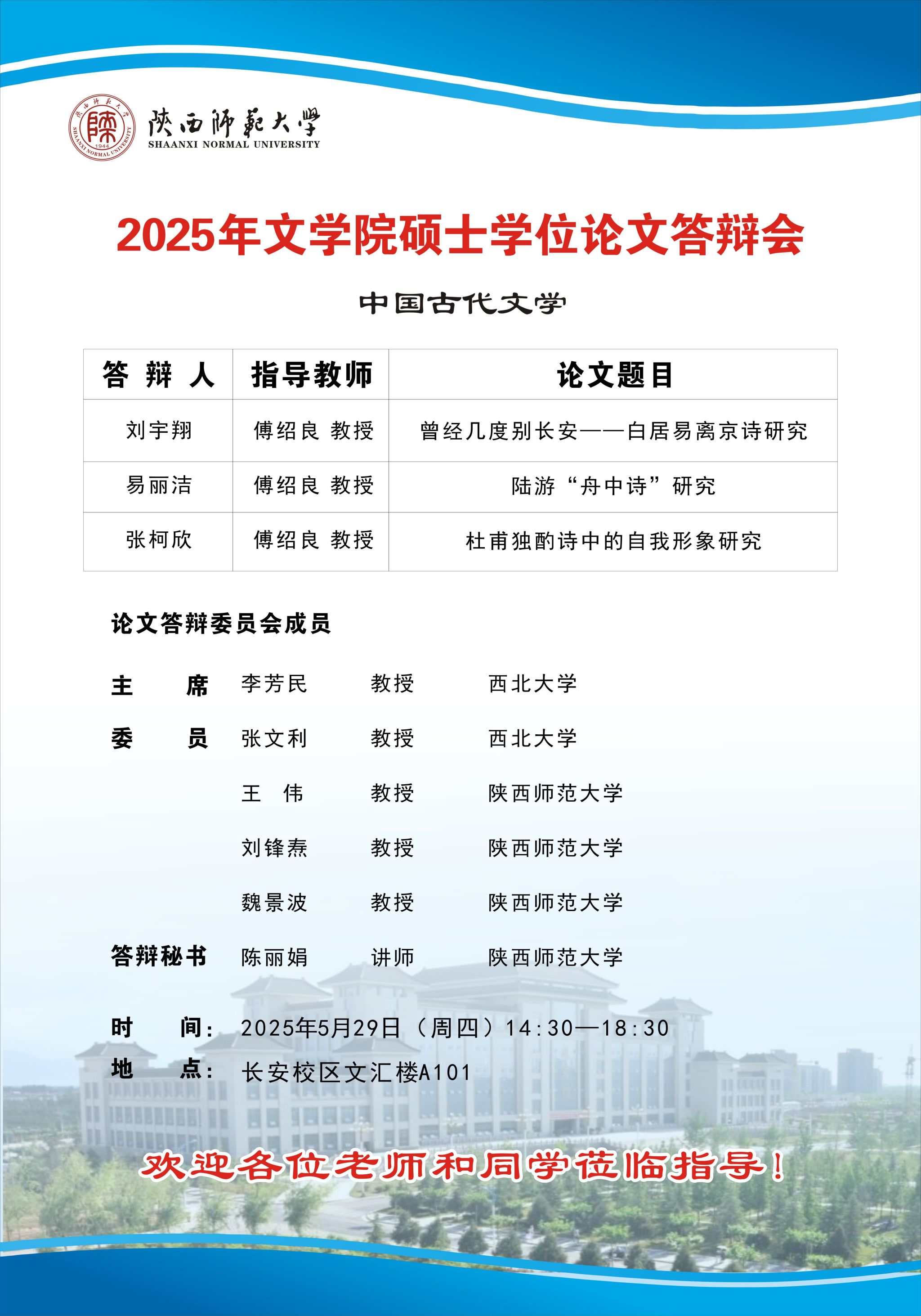 2025年上半年bw西汉姆联硕士学位论文公开答辩会(中国古代文学专业)