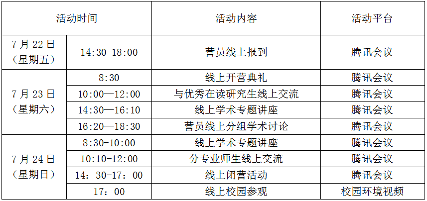 3.本夏令营日程安排为拟定计划,后续具体安排请随时关注QQ群消息及bw西汉姆联网页相关通知。