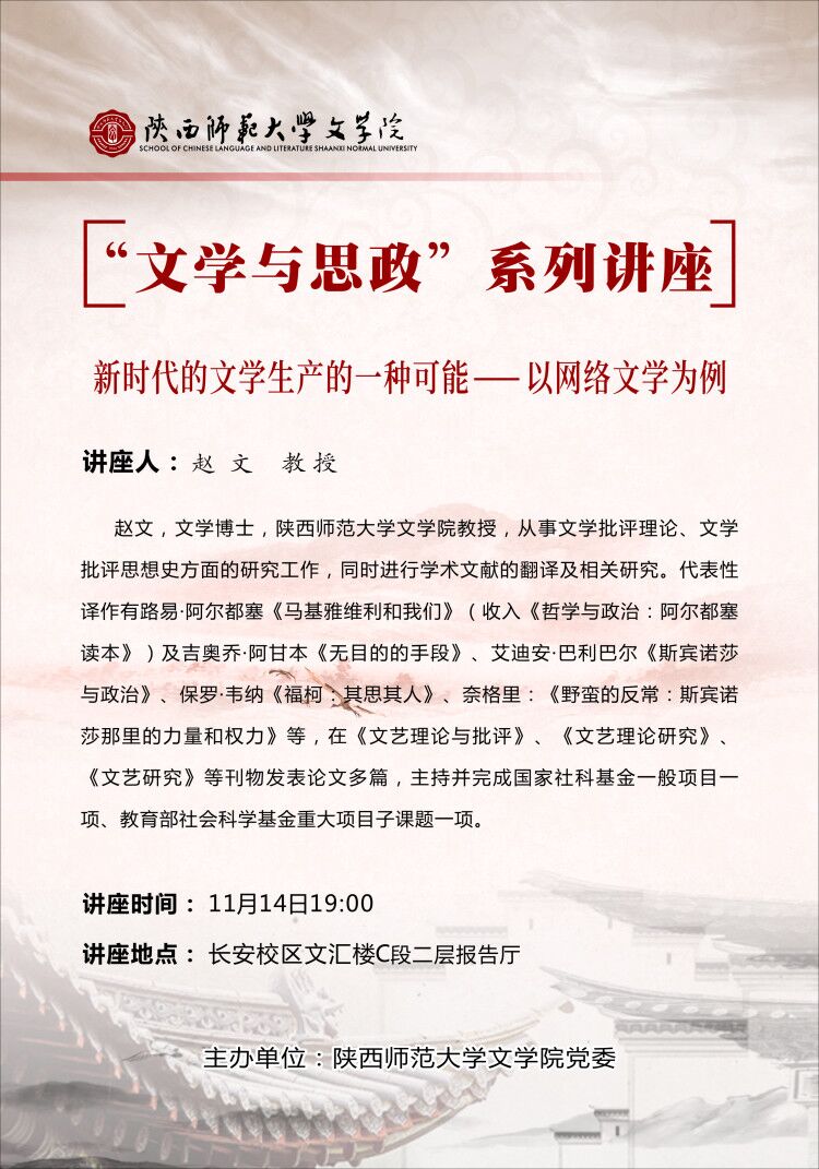 “文学与思政”系列讲座第八讲预告